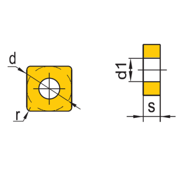 Plaquita para semiacabado con cuatro puntas de corte. Alta resistencia al desgaste. Mecanizado en corte continuo e interrumpido